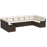 10dijelni modularni vrtni kauč set donosi dozu stila u tvoje vanjske prostore. Napravljen je od izdržljivih sintetičkih materijala u modernoj smeđoj i bijeloj kombinaciji, s udobnim jastučićima od visokokvalitetnog poliestera koji osiguravaju dodatnu udobnost na otvorenom.