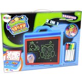 2u1 magnetska ploča za crtanje Velika ploča za crtanje ima mnoge prednosti koje će unijeti raznolikost u poslijepodne svakog malog djeteta. Ploča ima ploču za crtanje čarobnim markerima. LED pozadinsko osvjetljenje markera dodatno će poboljšati privlačnost izrađenih crteža i učiniti ih izvrsnim u zamračenoj prostoriji. Još jedna prednost je pretinac za pohranu s 3 pretinca u koji možete pohraniti pribor za crtanje poput markera, slova, brojeva. Stvorite riječi ili djela od njih! Korisno kao pomoć u nastavi. Ova tableta je senzacionalna alternativa bilo kojoj vrsti bojica ili markera. S ovim uređajem također štedimo papir jer nam omogućuje višestruko zapisivanje teksta i njegovo brisanje. To je izvrstan obrazovni alat za poticanje djece da nauče pisati i crtati. Set uključuje: dvostrana ploča za crtanje markeri sa spužvicom koja se može brisati LED svjetleći marker magnetska slova i brojke Dimenzije ploče: 33 cm x 32 cm x 5 cm Dimenzije pakiranja: 44 cm x 33 cm x 5 cm Igračka je namijenjena djeci starijoj od 3 godine. Set ima CE certifikat i usklađen je s EN 71, a dolazi upakiran u kartonsku kutiju, što ga čini idealnim za poklon.
