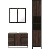 Ovaj elegantni set kupaonskog namještaja izvrstan je dodatak vašoj kupaonici i daje joj uredan i upečatljiv izgled! Stabilan i izdržljiv materijal: Konstruirano drvo izdržljiv je i stabilan materijal s glatkom površinom koja je otporna na vlagu, savijanje i cijepanje, što ga čini pouzdanim izborom za razne projekte.Stabilan i dugotrajan okvir: Metalni okvir kupaonskog umivaonika poboljšava vaš interijer industrijskim stilom i pruža iznimnu izdržljivost, stabilnost i otpornost na koroziju.Dovoljno prostora za pohranu: Kupaonski ormarić nudi dovoljno prostora za jednostavno smještanje vaših toaletnih potrepština i potrepština za kupanje poput sapuna, šampona, paste za zube itd.Jasna slika: Stakleno lice ogledala pruža fin i neiskrivljen odraz, stoga je prikladno za šminkanje, brijanje ili provjeravanje odjeće prije izlaska.Jednostavno održavanje: Zahvaljujući glatkoj površini, kupaonski ormarić lako se čisti vlažnom krpom i zahtijeva manje održavanja. Dobro je znati:Vijci i tiple za unutrašnjost zida nisu uključeni. Savjetujemo vam da pronađete i upotrijebite vijke i tiple koji su prikladni upravo za vaše zidove. Ako niste sigurni, možete se posavjetovati sa stručnjakom. Molimo vas da pročitate i slijedite svaki korak uputa. Upozorenje:Kako bi se spriječilo prevrtanje, ovaj proizvod mora se upotrebljavati s priloženim uređajem za pričvršćivanje na zid.