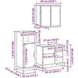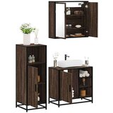 Ovaj elegantni set kupaonskog namještaja izvrstan je dodatak vašoj kupaonici i daje joj uredan i upečatljiv izgled! Stabilan i izdržljiv materijal: Konstruirano drvo izdržljiv je i stabilan materijal s glatkom površinom koja je otporna na vlagu, savijanje i cijepanje, što ga čini pouzdanim izborom za razne projekte.Stabilan i dugotrajan okvir: Metalni okvir kupaonskog umivaonika poboljšava vaš interijer industrijskim stilom i pruža iznimnu izdržljivost, stabilnost i otpornost na koroziju.Dovoljno prostora za pohranu: Kupaonski ormarić nudi dovoljno prostora za jednostavno smještanje vaših toaletnih potrepština i potrepština za kupanje poput sapuna, šampona, paste za zube itd.Jasna slika: Stakleno lice ogledala pruža fin i neiskrivljen odraz, stoga je prikladno za šminkanje, brijanje ili provjeravanje odjeće prije izlaska.Jednostavno održavanje: Zahvaljujući glatkoj površini, kupaonski ormarić lako se čisti vlažnom krpom i zahtijeva manje održavanja. Dobro je znati:Vijci i tiple za unutrašnjost zida nisu uključeni. Savjetujemo vam da pronađete i upotrijebite vijke i tiple koji su prikladni upravo za vaše zidove. Ako niste sigurni, možete se posavjetovati sa stručnjakom. Molimo vas da pročitate i slijedite svaki korak uputa. Upozorenje:Kako bi se spriječilo prevrtanje, ovaj proizvod mora se upotrebljavati s priloženim uređajem za pričvršćivanje na zid.
