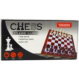 3in1 WOODEN CHESS, CHECKERS, BACKGAMBLER FOLDABLE GAMEThis 3in1 wooden game is a classic strategic game set that will appeal to both children and adults. It contains three of the most popular and challenging logic games chess, checkers, and backgammon enclosed in an elegant, foldable wooden board. This classic combination of aesthetics and functionality makes this set perfect for home, school, vacation, or family gatherings.The board is designed for ease of use it folds into a suitcase for easy storage and transport. Inside, there's room for all the set's components, ensuring pieces and dice won't get lost during transport. A metal clasp ensures a secure closure, while the elegant finish with printed squares, letters, and numbers makes the game easy to play, even for beginners.Chess teaches strategic thinking, planning, and analyzing your opponent's moves, checkers develops reflexes and observation, and backgammon hones prediction and calculation skills. All these games are excellent for mental development, concentration, and patience. This set is both educational and entertainingideal as a gift, for learning, or for sharing with family and friends.SPECIFICATIONS:Board dimensions: 24 x 24 cmFolded dimensions: 24 x 12 x 4 cmPackage dimensions: 24.5 x 13 x 4 cmMaterial: WoodGame type: Chess, checkers, backgammonFoldable board: Yes, with space for piecesClosure: Metal claspSET CONTENTS:Foldable wooden boardSet of chess piecesCheckers and backgammon pieces2 mini dice