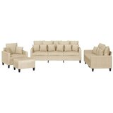 Ovaj set sofa izvrsno je mjesto za razgovor, čitanje, gledanje televizije ili jednostavno opuštanje. Bit će središnja točka u vašem domu. Izdržljiva tkanina: Tkanina ima jednostavan i čist izgled dok istovremeno ostaje prozračna i dugotrajna.Čvrst i stabilan okvir: Okvir sofe od šperploče i metala osigurava čvrstoću i stabilnost.Udobno sjedenje: Sofa je vrlo udobna s debelo podstavljenim sjedalom, naslonima za ruke i jastukom za leđa.Praktični jastuci za kauč: Ovi četvrtasti ukrasni jastuci uljepšat će vaše uređenje, ali također mogu pružiti dodatnu udobnost dok sjedite ili ležite.Višenamjenski tabure: Ovaj tabure prikladan je za odmaranje nogu dok ležite na sofi, a također vam nudi dodatnu sjedalicu u vašoj prostoriji. Osim toga, zbog jednostavnog dizajna i kompaktne veličine, idealan je za gotovo sve prostore za boravak.