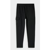 Boy's jogger sweatpants are perfect as an element of both casual and sporty everyday styles. They have a regular fit that comfortably adapts to the silhouette and tapered legs ending with an elastic cuff. The single jersey knit with a smooth surface on one side makes them elastic and comfortable to wear. The children's sweatpants are made of 80% cotton, making them soft, durable, and pleasant to the touch. The addition of polyester (20%) ensures that the material retains its shape and is resistant to wear even for many seasons. The brushed interior guarantees extra warmth, making the pants an ideal choice for cooler days. There are 2 open pockets on the sides. Additionally, there is a cargo pocket on the outer side of the right thigh. The leg features the inscription "Choose Your Own Sphere". An elastic waistband with external adjustment on a drawstring.