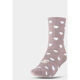 Girls' socks from the 4F brand are a great choice for everyday wear and leisure activities.They are made of soft and breathable material with a high proportion of cotton, which makes them pleasant to the touch and wicks moisture away well.The elastic upper cuff ensures that the socks fit well on the foot and do not slip when worn.Reinforced parts on the toes and heel contribute to greater durability and comfort.The package includes three pairs in different design options plain, with hearts and with 4F logos which will give the outfit a playful and girly look.The socks are easy to combine with various shoes and complement both sporty and casual styles.