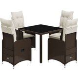 Uživajte u kavi ili razgovarajte sa svojom obitelji i prijateljima u vrtu, dvorištu ili na balkonu uz ovaj udobni bistro set! Izdržljiv materijal: PE ratan, poznat i kao poliratan, jak je sintetički materijal kojem je potrebno malo održavanja i izgleda poput prirodnog ratana. Lagan je, jednostavan za čišćenje i često se upotrebljava za vanjski namještaj zbog svoje izdržljivosti i svojstava otpornosti na vremenske uvjete.Podesivi naslon za leđa i oslonac za noge: Ova vrtna sjedalica ima ručku. Možete podesiti naslon za leđa i oslonac za noge bilo u koji položaj povlačenjem ručke i brzo ih vratiti u prvobitni položaj.Udobno sjedenje: Ovaj vanjski namještaj, zajedno s debelo podstavljenim jastucima, nudi udobno iskustvo sjedenja.Uklonjiva i periva navlaka: Ovi jastuci za sjedalo imaju uklonjive navlake za jednostavno pranje i održavanje. Jastuci za naslon imaju preklop na stražnjoj strani za jednostavno pričvršćivanje na naslon.Staklena ploča stola: Ploča vanjskog stola napravljena je od jakog i izdržljivog kaljenog stakla, što olakšava čišćenje vlažnom krpom i dodaje dašak elegancije vašem vanjskom prostoru. Dobro je znati:Kako bi vaš vanjski namještaj ostao lijep, preporučujemo da ga zaštitite vodootpornom navlakom.
