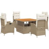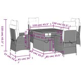 Ovaj vrtni blagovaonski set izvrstan je izbor za objedovanje na otvorenom ili jednostavno za opuštanje u vrtu, dvorištu ili na terasi. Izdržljiv materijal: PE ratan, poznat i kao poliratan, jak je sintetički materijal kojem je potrebno malo održavanja i izgleda poput prirodnog ratana. Lagan je, jednostavan za čišćenje i često se upotrebljava za vanjski namještaj zbog svoje izdržljivosti i svojstava otpornosti na vremenske uvjete.Podesivi naslon za leđa: Ova vrtna sjedalica ima ručku. Naslon za leđa možete podesiti bilo u koji položaj povlačenjem ručke i brzo ga vratiti u prvobitni položaj.Podesiva stolna ploča: Stolna ploča može se podići kako bi stol bio viši, što pretvara ovaj vanjski stol iz stolića za kavu u blagovaonski stol. Savršen je za goste ili obroke vani.Uklonjiva i periva navlaka: Ovi jastuci za sjedalo imaju uklonjive navlake za jednostavno pranje i održavanje. Jastuci za naslon imaju preklop na stražnjoj strani za jednostavno pričvršćivanje na naslon.Udobno sjedenje: Ovaj vanjski namještaj, zajedno s debelo podstavljenim jastucima, nudi udobno iskustvo sjedenja. Dobro je znati:Kako bi vaš vanjski namještaj ostao lijep, preporučujemo da ga zaštitite vodootpornom navlakom.