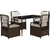 Ovaj vrtni blagovaonski set izvrstan je izbor za objedovanje na otvorenom ili jednostavno za opuštanje u vrtu, dvorištu ili na terasi. Izdržljiv materijal: PE ratan, poznat i kao poliratan, jak je sintetički materijal kojem je potrebno malo održavanja i izgleda poput prirodnog ratana. Lagan je, jednostavan za čišćenje i često se upotrebljava za vanjski namještaj zbog svoje izdržljivosti i svojstava otpornosti na vremenske uvjete.Podesivi naslon za leđa: Ova vrtna sjedalica ima ručku. Naslon za leđa možete podesiti bilo u koji položaj povlačenjem ručke i brzo ga vratiti u prvobitni položaj.Udobno sjedenje: Ovaj vanjski namještaj, zajedno s debelo podstavljenim jastucima, nudi udobno iskustvo sjedenja.Uklonjiva i periva navlaka: Jastuk za sjedalo ima uklonjivu navlaku za jednostavno pranje i održavanje.Staklena ploča stola: Ploča vanjskog stola napravljena je od jakog i izdržljivog kaljenog stakla, što olakšava čišćenje vlažnom krpom i dodaje dašak elegancije vašem vanjskom prostoru. Dobro je znati:Kako bi vaš vanjski namještaj ostao lijep, preporučujemo da ga zaštitite vodootpornom navlakom.