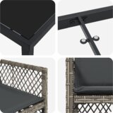 Ovaj set za blagovanje na otvorenom fokusira se na moderan vanjski život, kombinirajući stil i funkciju. Savršeno za balkone ili terase, njegov dizajn u sivoj i crnoj boji podiže svaki vanjski prostor, pružajući udobno sjedenje za četiri. Idealno je za obiteljske obroke ili druženja s prijateljima.