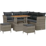 Ova vrtna garnitura je sjajna kombinacija stila i funkcionalnosti, napravljena da poboljša tvoje vanjsko iskustvo. Ima prostrano sekcionalno dizajniranje, svestrane klupe i tamno sive jastučiće, stvarajući ugodnu vibru savršenu za opuštanje ili druženje s prijateljima.