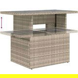Ovaj set vrtnih sofa bit će odličan dodatak vašem dvorištu, terasi ili trijemu, pružajući udoban i privlačan prostor za razgovor s obitelji i prijateljima ili jednostavno opuštanje i uživanje na otvorenom. Izdržljiv materijal: PE ratan, poznat i kao poliratan, jak je sintetički materijal kojem je potrebno malo održavanja i izgleda poput prirodnog ratana. Lagan je, jednostavan za čišćenje i često se upotrebljava za vanjski namještaj zbog svoje izdržljivosti i svojstava otpornosti na vremenske uvjete.Podesiva stolna ploča: Stolna ploča može se podići kako bi stol bio viši, što pretvara ovaj vanjski stol iz stolića za kavu u blagovaonski stol. Savršen je za goste ili obroke vani.Staklena ploča stola: Ploča vanjskog stola napravljena je od jakog i izdržljivog kaljenog stakla, što olakšava čišćenje vlažnom krpom i dodaje dašak elegancije vašem vanjskom prostoru.Uklonjiva i periva navlaka: Ovi jastuci za sjedalo imaju uklonjive navlake za jednostavno pranje i održavanje.Modularni dizajn: Ovaj set vanjskog namještaja ima modularni dizajn, što ga čini potpuno fleksibilnim i lakim za pomicanje, tako da možete stvoriti prilagođeni raspored vanjskog namještaja. Dobro je znati:Kako bi vaš vanjski namještaj ostao lijep, preporučujemo da ga zaštitite vodootpornom navlakom.