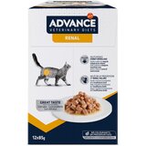 Pati li vaša mačka od bubrežnih bolesti i tražite li za nju odgovarajuću hranu? Kada se radi o cjelovitoj dijetalnoj hrani posebno razvijenoj za mačke s bubrežnom insuficijencijom, Advance Veterinary Diets Feline Renal dobar je izbor. Ovu sočnu mokru hrana karakterizira savršeno usklađena receptura s prilagođenim sadržajem hranjivih tvari. Radi rasterećenja bubrega, ova hrana sadržava malo proteina, ali zato visoko kvalitetnih proteina. Sadržaj fosfora je nizak, što također pomaže pri rasterećenju bubrega i pridonosi njihovoj funkciji. Advance Veterinary Diets Feline Renal sadržava dragocjene nezasićene masne kiseline. Također potiče neutralnu pH vrijednost mokraće za podršku normalnoj funkciji mokraćnog sustava. Advance Veterinary Diets Feline Renal u pregledu: dijetalna potpuna hrana za odrasle mačke za podršku radu bubrega kod kroničnog ili akutnog zatajenja bubrega nizak sadržaj fosfora: može pomoći smanjiti opterećenje bubrega prilagođen sadržaj proteina: sadržava manje, ali vrlo kvalitetne proteine, služi i za rasterećenje bubrega s inulinom: iz cikorije, za regulaciju crijevne aktivnosti i potporu imunitet s nezasićenim masnim kiselinama: sadržava dragocjene omega3 masne kiseline kontrola pH vrijednosti: potiče okruženje mokraće koje je nepovoljno za stvaranje oksalatnih kamenaca bogata vitalnim tvarima: kako biste izbjegli simptome manjka vitamina i minerala, vašoj mački osigurava sve važne hranjive i vitalne tvari dobrog okusa: ukusna mokra hrana s piletinom i svinjetinom Opće informacije Razgovarajte s veterinarom prije početka davanja ove hrane svojem ljubimcu ili ako želite produljiti razdoblje hranjenja. Ako ljubimca hranite ovom veterinarskom hranom, redovito (svakih 6 mjeseci) potražite savjet veterinara. Ako se zdravstveno stanje ljubimca pogorša, odmah se obratite veterinaru.