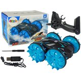Amfibijsko vozilo na daljinsko upravljanje za vodu i neravan terenVaše dijete zanimaju terenska putovanja, vožnja po neravnom terenu. Poklonite mu vozilo koje će zadovoljiti i najzahtjevnijeg ljubitelja terenskih vozila.Zahvaljujući velikim, napuhanim kotačima i jedinstvenom ovjesu, može se koristiti u svim uvjetima, osiguravajući nezaboravnu zabavu. Kotači povećavaju prianjanje vozila na cestu. Komplet uključuje praktičan upravljač tako da možete dobiti najviše užitka u vožnji. Izvrsni parametri i sportski dizajn čine ga savršenim vozilom za mlađe i starije dječake. kreće se naprijed, nazad, lijevo, desno dvosmjerna vožnja automobil se može okretati za 360 stupnjeva opremljen vodootpornim gumenim prstenom za zaštitu unutrašnjosti automobila vozilo vozi i po vodi i po kopnu mora se kretati kroz čistu vodu, inače se može zaprljati i igra može biti prekinuta pri velikoj brzini, samo ga trebate udariti o zid ili se brzo zaustaviti da se prevrne i pružite mu nevjerojatno iskustvo gledanja.Glavni materijal: ABSPlava bojaFrekvencija: 2,4 GHzVrijeme rada: oko 15 minutaDimenzije elemenata garniture: autić 14 cm x 15 cm daljinski upravljač cca 18 cm x 12 cmNamijenjeno djeci starijoj od 8 godina. Daljinski upravljač napajaju 2 x 1,5V AA baterije nisu uključene, dok auto ima 3,7V baterije (uključene).https://youtu.be/Nz6ExAJVrM