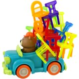 Arkadna igra s padajućim stolicama, automobil s pokretnom metom Igra padajućih stolica je arkadna igra za cijelu obitelj koja će pozitivno utjecati na razvoj vašeg djeteta. Različite varijacije igre pomoći će u razvoju na svim razinama. Boje će stimulirati vid, a sama igra će potaknuti logičko razmišljanje, koordinaciju ruku i očiju te preciznost. Pogledajte što ova igračka nudi! Set se sastoji od 48 stolica različitih oblika i boja te automobila na baterije. Automobil se kreće, vozi u krug, a zadatak je izgraditi toranj od stolica. Pravila su vrlo jednostavna. Svaki igrač redom slaže jednu stolicu na drugu tako da se složeni toranj ne raspadne. Složite obojene stolice jednu na drugu i napravite što veći toranj. Osoba koja ne uspije održati stabilnu, stojeću piramidu gubi. Stolice koje su već složene ne mogu se dodirivati niti pomicati. Toranj mogu slagati nekoliko osoba ili sami. Stvar otežava automobil koji se kreće u krug, a pokretna meta je pravi izazov. Smjer kretanja možete promijeniti pomoću gumba na samom dnu. Druge varijacije igre: slaganje oblika sa stolica kvadrat, krug kombiniranje istih boja i uzoraka stolica pronalaženje druge boje među redovima stolica učenje brojanja po broju stolica gradnja tornja od stolica paziti da se toranj ne prevrne stražnji dio automobila ima rupe u koje se mogu umetnuti stolice prema bojama koje je odredila druga osoba. Sve vrste igre opisane su u priloženim uputama. Različite varijacije igre osigurat će da joj neće brzo dosaditi. Stupnjevana težina igara, od lakših do težih, omogućit će vašem djetetu da razvije svoje vještine. Boje stolica: crvena narančasta žuta svijetlo zelena plava ljubičasta Dimenzije elemenata seta: stolica: 3 cm x 5 cm x 3 cm auto: 15 cm x 9 cm x 10 cm Dimenzije kutije: 20 cm x 29 cm x 9 cm Igra je prikladna za djecu stariju od 3 godine. CE certifikat i u skladu s EN 71, set dolazi pakiran u kartonskoj kutiji, što ga čini idealnim za poklon. Automobil napajaju dvije 1,5 V AA baterije koje nisu uključene.