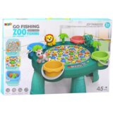 Igra ribolova u obliku stola. Ovaj izvanredni zeleni stol je ulaz u beskrajnu zabavu za cijelu obitelj i prijatelje. Izrađen od čvrstog materijala, ne samo da je izdržljiv, već i estetski. Njegov šareni dizajn privlači pažnju i potiče vas na zajedničku igru. Kante postavljene sa strane stola nisu samo praktičan dodatak, već i element natjecanja. Skupite što više riba, bacite ih u kante i pripremite se za brojanje bodova na kraju igre. Na bočnim stranama stola nalaze se i slatke životinjice koje su ugodne za oko. Stol ima pokretnu ploču koja ribolov čini stalnim izazovom. Dodatno, možemo postaviti opciju sa ili bez melodije. Ribe se stalno kreću, tako da igra nikada ne dosadi. Ovo je izvrsna prilika za jačanje koordinacije okoruka i refleksa! Set sadrži čak 45 šarenih ribica. U setu se nalaze i četiri štapa za pecanje, svaki u drugoj boji. Sada se možete natjecati sa svojom braćom i sestrama ili prijateljima da vidite tko je prvak u ribolovu! Stol se napaja sa 3x 1,5V AA baterije koje nisu uključene u set. Dimenzije stola: 33 cm x 32,5 cm x 20 cm Veličina paketa: 53 cm x 36,5 cm x 6 cm Ima CE certifikat i u skladu je sa standardom EN71 . Namijenjeno djeci starijoj od 3 godine.