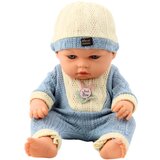 BABY DOLL IN KNITTED OUTFIT AND HAT 29CMThe baby doll in knitted outfit and hat is a realistic and aesthetically made toy that will become a perfect companion for everyday play for children from 3 years of age. Thanks to open eyes, a gentle facial expression and carefully reproduced proportions, the doll resembles a real baby, which naturally stimulates children's caring instincts and encourages caring, tender play.The doll measures approx. 29 x 15 cm, which makes it large enough to make an impression, and at the same time light and handy it fits perfectly in small hands and easily fits most strollers, cots and other children's doll accessories. She is dressed in a soft knitted set in shades of light cream and pastel blue, decorated with a patch that gives a modern accent. The whole is complemented by a matching knitted hat, emphasizing the cozy, homely character of the doll.It is not only a beautiful toy, but also a tool supporting the emotional and social development of a child. The doll allows you to play everyday scenes such as feeding, changing, putting to sleep or cuddling which stimulates the imagination and helps build the ability of empathy, patience and responsibility in a natural way and adapted to the child's world.SPECIFICATION:Doll dimensions: approx. 29 x 15 cmOutfit: Knitted set + hatMaterial: Plastic (body), textiles (clothing)CONTENTS OF THE SET:Baby doll 29 cmKnitted outfitHat