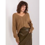 Camel classic sweater with welts. Product code: BASW8028.36PDominant pattern: plainStyle: Casualoccasion: everyday, for the city, for a walk The model is wearing one size. Model's measurements: height 177 cm, bust 84 cm, waist 62 cm, hips 89 cm. Measurements of the one size sweater measured flat: armpit width 54 cm, total length 60 cm, sleeve length 56 cm.