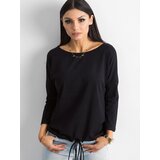 Black blouse Fiona. Uppers of clothing are very important elements of every woman's wardrobe. It is difficult to imagine our daily functioning without them. A special role among them is played by fashionable blouses, which usually make up a significant part of our drawers and shelves. Therefore, pay attention to this basic blouse, which is perfect for any situation and you can wear it on any informal occasion. A plain cotton blouse is the best choice for everyday wear, as it provides exceptional wearing comfort, allday comfort and breathability. This model is made of breathable cotton with the addition of a bit of elastane, which makes the offered basic blouse additionally soft and pleasant in contact with the skin. A black basic blouse is an absolute musthave, which will be perfect for everyday styling, but when necessary, it will also work well in slightly more formal sets. It is not only universal and goes with everything, but also exudes feminine charm, mainly thanks to the beautiful boat neckline, which unobtrusively emphasizes the female neck and collarbones.A black cotton blouse is undoubtedly a basic element of every woman's wardrobe who appreciates the latest trends and a minimalist way of dressing. So it is an absolute must have that each of you should have in your closet. The presented model from the Fiona series, in addition to a feminine neckline, also has fashionable 3/4 sleeves and a subtle welt at the bottom finished with two drawstrings. Such seemingly insignificant details beautifully enhance the look of a basic blouse, without taking away its minimalist character. In addition, this black basic blouse also has a slightly looser cut, which fits comfortably on the figure, covers up smaller figure flaws and is very comfortable to wear. This design makes it the best choice for everyday use, as it guarantees versatility and a perfect match with all other items of clothing. If you need other colors of the basic blouse from this model, browse the entire range of available shades and choose your favorite now! Material: 90% cotton, 10% elastanewashing method: machine wash at 30CThe model is wearing a size S. Model's measurements: height 168 cm, bust 89 cm, waist 60 cm, hips 91 cm.