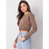 Brown blouse with long sleeves. Material: 90% cotton, 10% elastanewashing method: machine wash at 30CThe model is wearing a size S. Model's measurements: height 175 cm, bust 85 cm, waist 65 cm, hips 89 cm. Dimensions of the blouse in size S measured flat: armpit width 49 cm, total length 59 cm, sleeve length 56 cm