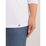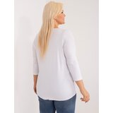 White viscose plus size blouse. Material: 90% viscose, 10% elastanewashing method: machine wash at 30CThe model is wearing size XL. Model's measurements: height 172 cm, bust 103 cm, waist 73 cm, hips 103 cm. Dimensions of the blouse in size XL measured flat: width under the armpits 62 cm, total length 69 cm, sleeve length 40 cmDimensions of the blouse in size 2XL measured flat: armpit width 65 cm, total length 70 cm, sleeve length 42 cm