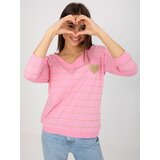 Pink and beige striped cotton blouse BASIC FEEL GOOD . Product code: RVBZ8512.04Dominant pattern: stripesStyle: Casualoccasion: casual, city, summer The model is wearing a size S/M. Model's measurements: height 172 cm, bust 88 cm, waist 61 cm, hips 92 cm. Dimensions of the blouse in size S/M measured flat: armpit width 55 cm, sleeve length 44 cm, total length 58 cm.