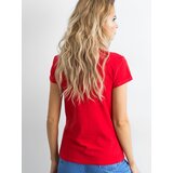 Peachy's red tshirt. Plain women's Tshirts are an important part of every woman's wardrobe. They are timeless, classic and go well with other clothes, and are suitable for virtually any occasion. You can wear them to school or work, as well as to a meeting with friends or a walk. They fit perfectly with sporty styling, but also work perfectly in urban casual and slightly more feminine outfits. You can combine them with sweatpants, jeans and skirts from our latest online collection. Match them with a jacket or zipup hoodie and high heels or fashionable sneakers and hit the city! This basic women's tshirt is made of a modern mix of materials that are breathable and comfortable at the same time. Choose your favorite color in our online store! Material: 90% cotton, 10% elastanewashing method: machine wash at 30C Product code: RVTS4623.86Dominant pattern: no patternStyle: Casualoccasion: casual, city, work, summer The model is wearing a size S. Model's measurements: height 175 cm, bust 90 cm, waist 60 cm, hips 90 cm.Dimensions of the tshirt in size S measured flat: armpit width 45 cm, total length 50 cm.