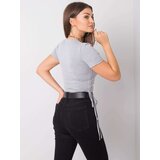 Grey melange women's cotton tshirt. Material: 90% cotton, 10% elastanewashing method: machine wash at 30CThe model is wearing a size S. Model's measurements: height 170 cm, bust 93 cm, waist 66 cm, hips 93 cm. Dimensions of a tshirt in size S measured flat: width under the armpits 36 cm, total length 48 cm
