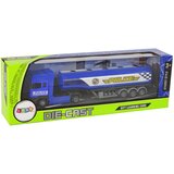 Blue Police Tank Truck 30 cm LongThis is the perfect toy for any special forces lover. It combines a tanker and a truck in one.The truck, due to its simple functionality, is sure to interest and encourage independent play, and thanks to the small size of the vehicle, a child can take such a car with them to kindergarten, to the doctor or on a family trip. It looks like a real counterpart that drives on the road and any little collector can expand their collection. The overall colour is blue with white POLICE lettering. The tanker can be turned sideways, so it has a lot of manoeuvrability.The set includes a tanker truck with 6 cards with different vehicles, with names in English.Dimensions of the truck:30 cm x 5 cm x 7.5 cmPackage dimensions:37 cm x 13 cm x 8 cmThe toy is suitable for children over three years old. Complies with EN71 standard and CE certification.