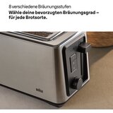 Braun HT5220BK Toster sa dugim otvorima Proizvode osobine 2 dodatno duga otvoraSa dva dodatno duga otvora možeš istovremeno tostirati do 4 tosta ili 2 kriške kruha.Varijabilna smedenjaIzmedu 8 razlicitih postavki može se odabrati željena razina smedenja, neovisno o vrsti kruha.Integrirani dodatak za pecivaJednostavno zagrijavanje ili tostiranje cijelih peciva.Ponovno grijanje i odmrzavanjeImaš više kontrole nad željenom razinom smedenja prilikom zagrijavanja ili odmrzavanja tosta.Automatsko cen