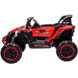 gumeni EVA kotači kožno sjedalo daljinski upravljač za roditelje paljenje na tipku pojas za vezanje motor: 4 x 45W baterija: 12V7Ah svjetla se pale nasnimane melodije, zvučni efekti, priključak za USB, SD, AUX, MP3, Bluetooth dimenzije: 115 cm x 72 cm x 62 cm nosivost: 30 kg težina vozila 18 kg