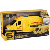 Delivery Car 1:16 Friction Drive Opening Doors Lights Yellow SoundsYellow delivery van with friction drive in 1:16 scale. This is an extraordinary toy that not only provides many hours of entertainment, but also develops your child's imagination and creative skills.This extraordinary car stands out not only for its colorful design, but also for its interactive functions. Equipped with light and sound effects that add additional fun while playing, but this is only the beginning! The car has opening doors on the side, at the back of the vehicle and on the roof, which allows the child to pretend to be a real parcel carrier.Thanks to this, the toddler can play the role of a delivery driver and play in loading and unloading parcels, while developing his manual skills and creativity. This interactive game allows your little one to explore different scenarios and develop social skills by pretending to be a driver and communicating.Our car not only provides fun, but also stimulates imagination, develops manual skills and teaches logical thinking. It's the perfect gift for a little explorer who loves new challenges and fascinating adventures. Make your child's every day full of joy and exciting experiences with our friction drive delivery vehicle.The car is powered by 3x AG13 batteries, which are part of the set.Car dimensions:26cm x 12cm x 8.5cmSize of the package:31cm x 16.5cm x 11cmIt is CE certified and complies with the EN71 standard. Intended for children over 3 years of age.