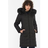 Ženska prošivena jakna dugi rukavi kapuljača s krznenim detaljem 2 bočna džepa patentni zatvarač Materijal: 100% poliester