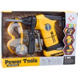 DJEČJA BUŠILICA S VRHOVIMA I ZAŠTITNIM NAOČALAMADječja udarna bušilica je realistično izrađena igračka koja savršeno replicira pravi građevinski alat. Izrađena imajući na umu mlade graditelje, ne samo da pruža puno zabave tijekom igre, već i podržava razvoj ručnih vještina, mašte i kreativnog razmišljanja. Igračka omogućuje djetetu da sigurno oponaša odrasle tijekom "radova na obnovi", a istovremeno ga uči koncentraciji, preciznosti i odgovornosti.Uređaj je opremljen zamjenjivim vrhovima, zahvaljujući kojima dijete može simulirati razne građevinske radove bušenje, udaranje ili odvrtanje. Pokretni vrh i zvučni efekti radnje čine zabavu još realnijom i zanimljivijom. Cjelinu nadopunjuju zaštitne naočale, koje ne samo da povećavaju dojam autentičnosti, već i uče sigurnosnim pravilima od malih nogu.Igračka se napaja baterijama i opremljena je funkcijom bušenja i rotacije. Svi elementi izrađeni su od izdržljivih i sigurnih materijala, što osigurava udobnost, izdržljivost i sigurnost tijekom mnogo sati igre. Ovo je idealan prijedlog za svako dijete koje je zainteresirano za uradi sam i voli se igrati scena iz svakodnevnog života.SPECIFIKACIJA: Vrsta igračke: Dječja udarna bušilica s izmjenjivim vrhovima Rad: 3 x AA 1,5 V baterije (nisu uključene) Boja: Žuta i crna Materijal: Plastika (ABS) Dimenzije igračke: 31 x 20 x 7,5 cm Dimenzije pakiranja: 32,5 x 6,5 x 23,5 cmSADRŽAJ SETA: Udarna bušilica 4 zamjenjiva vrha Zaštitne naočale
