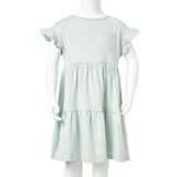 Naša linija dječje odjeće posvećena je pristupačnoj, visokokvalitetnoj i izdržljivoj svakodnevnoj odjeći za djecu od 1,5 do 10 godina. Naš asortiman uključuje jakne, džempere, košulje i još mnogo toga, u različitim stilovima, veličinama i bojama. Prateći standarde visoke kvalitete na tržištu, koristimo se vrhunskim materijalima i naprednim proizvodnim tehnikama. Ova dječja haljina ima okrugli izrez, rukave s volanima i džep na prsima. Haljina boje mente za djecu ima pruge po cijeloj površini. Dječja kratka haljina napravljena je od mekanog materijala koji uključuje pamuk i elastan za udobnost i prozračnost. Napomena: Ova tablica veličina na slici daje mjere za djecu od 1,5 do 10 godina, pokrivajući visinu, prsa, struk i bokove. Lako ćete pronaći pravu odjeću za svoje dijete.