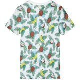Naša linija dječje odjeće posvećena je pristupačnoj, visokokvalitetnoj i izdržljivoj svakodnevnoj odjeći za djecu od 1,5 do 10 godina. Naš asortiman uključuje jakne, džempere, košulje i još mnogo toga, u različitim stilovima, veličinama i bojama. Prateći standarde visoke kvalitete na tržištu, koristimo se vrhunskim materijalima i naprednim proizvodnim tehnikama. Ova dječja majica ima kratke rukave, okrugli izrez i ravni model. Majica za djecu ima uzorak kokosa, banana i lišća. Dječja majica napravljena je od 100 % pamuka za mek i ugodan dodir. Napomena: Ova tablica veličina na slici daje mjere za djecu od 1,5 do 10 godina, pokrivajući visinu, prsa, struk i bokove. Lako ćete pronaći pravu odjeću za svoje dijete.