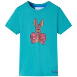 Naša linija dječje odjeće posvećena je pristupačnoj, visokokvalitetnoj i izdržljivoj svakodnevnoj odjeći za djecu od 1,5 do 10 godina. Naš asortiman uključuje jakne, džempere, košulje i još mnogo toga, u različitim stilovima, veličinama i bojama. Prateći standarde visoke kvalitete na tržištu, koristimo se vrhunskim materijalima i naprednim proizvodnim tehnikama. Ova dječja majica ima kratke rukave, rebrasti okrugli izrez i ravni model. Ova majica za djecu ima uzorak klokana s boksačkim rukavicama. Dječja majica kratkih rukava napravljena je od 100 % pamuka za udobnost i prozračnost. Napomena: Tablica veličina na slici daje mjere za djecu od 1,5 do 10 godina, pokrivajući visinu, prsa, struk i bokove. Lako ćete pronaći pravu odjeću za svoje dijete.