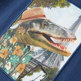 Naša linija dječje odjeće posvećena je pristupačnoj, visokokvalitetnoj i izdržljivoj svakodnevnoj odjeći za djecu od 1,5 do 10 godina. Naš asortiman uključuje jakne, džempere, košulje i još mnogo toga, u različitim stilovima, veličinama i bojama. Prateći standarde visoke kvalitete na tržištu, koristimo se vrhunskim materijalima i naprednim proizvodnim tehnikama. Ova dječja majica ima kratke rukave, okrugli izrez i ravni model. Majica za djecu ima uzorak dinosaura koji putuje. Dječja majica kratkih rukava napravljena je od 100 % pamuka za mek i ugodan dodir. Napomena: Tablica veličina na slici daje mjere za djecu od 1,5 do 10 godina, pokrivajući visinu, prsa, struk i bokove. Lako ćete pronaći pravu odjeću za svoje dijete.