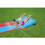 Double Water Slide 4.88 m Bestway 52478A double slide will provide classic, timeless fun in the backyards for all children over 3 years of age. It will be an ideal form of spending free time and interesting entertainment. Simply unfold the slide, attach it to the ground and connect a garden hose. Thanks to the special safeguards included in the set, the slide will not move. The 4.88 m slide is perfect for lonely speed trials or taking turns with friends. The water funnels at the end of the pool make a landing with a big splash at the finish line. The builtin sprinklers are specially designed to cover more efficiently and provide a cascading effect, keeping the track slippery.The set includes: slide repair patchTechnical data: Slip length: 4.88 m For two inflatable soft mat Water flows down to the pool providing splash at the end of the descent Two tracks PVC material builtin sprinklers Intended for children over 3 years of ageSize of the package:30 cm x 30 cm 7 cm