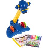 DescriptionDrawing Projector + AccessoriesA drawing projector with sound and light effects for children from three years of age. The set contains as many as 8 slides on each of 4 disks, with pictures depicting fruits, vehicles, sea and land animals. The drawing projector has a movable head (up and down), and the image sharpness adjustment is located underneath the head. The toy is very easy to use, just turn it on at the top and insert the disc with pictures and colorful slides will appear. Slides can be traced in the notebook with the markers included in the set. The projector can operate in silent mode, with or without sounds. The base of the projector has recesses for storing markers and projector discs. Playing with the projector develops manual and artistic skills and develops imagination. The toy is powered by 3 x 1.5 V AA batteries, which are not included in the set.Dimensions projector approx. 22 cm x 14.5 cm x 33.5 cm, a disc with pictures, approx. 5.5 cm in diameter, markers, approx. 13.5 cm long, notebook approx. 14 cm x 12 cm x 0.2 cm, package approx. 23 cm x 9.5 cm x 27.8 cm.Set contents projector, 4 discs of patterns for the projector, 8 pictures on each disc, 12 markers, painting notebook.