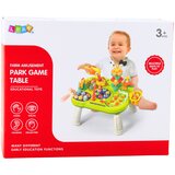 Edukativni stol Play Park je višenamjenska igračka koja djetetu pruža ne samo izvrsnu zabavu, već i podržava njegov motorički, senzorni i kognitivni razvoj. Namijenjen djeci od 3 godine, dizajniran je s ciljem zanimljive, sigurne i kreativne igre.Igračka nudi niz interaktivnih funkcija od ribolova, preko igre "udari krticu", do vrtlarstva i sortiranja oblika. Šareni elementi, rotirajući dijelovi, pomicanje povrća i cvijeća potiču ručnu aktivnost, a istovremeno vježbaju koordinaciju ruku i očiju te logičko razmišljanje.Svaka funkcija stola podržava drugačiji aspekt djetetovog razvoja: muzikalnost, ručne vještine, interakcije i učenje boja i oblika. Čvrsta konstrukcija i sigurni materijali čine stol savršenim i za dom i za vrtić.SPECIFIKACIJA: Dimenzije stola: cca. 55 x 48 x 42 cm Dimenzije pakiranja: 32,5 x 26,5 x 12 cm Materijal: plastika sigurna za djecu Napajanje: nema (mehaničke i ručne funkcije) Funkcije: ribolov, igra udaranja krtica, vrtlarenje, rotirajuće cvijeće, vrtuljakSADRŽAJ SETA: Edukativni stol Set riba i štap za pecanje Drveni blok i krtice za udaranje Elementi za sadnju i berbu povrća