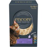 Encore Cat Pouch u temeljcu ukusna je mokra hrana za mačke koja uvjerava posebno ukusnom recepturom i 100 % prirodnim sastojcima. Sastoji se od preko 50 % mesa ili ribe i stoga je posebno bogato proteinima. Pri tome je u potpunosti bez nepotrebnih žitarica, punila i konzervansa, što je čini izvrsnim izborom za vašu mačku. Kao dopunska hrana Encore Cat Pouch u temeljcu izvrstan je dodatak suhoj hrani. Pakira se u mješovito pakiranje, u vrećicama za očuvanje svježine, u tri različite varijante. Stoga je zajamčena raznolikost u zdjelici s hranom. Encore Cat Pouch u temeljcu 10 x 50 g u pregledu: ukusna mokra hrana za mačke više od 50 % mesa ili ribe: sastav bogat proteinima 100 % prirodni sastojci: bez nepotrebnih žitarica, punila i konzervansa visok sadržaj vlage: podržava unos tekućine vaše mačke savršen dodatak: može se koristiti kao dodatak za mogu se poslužiti na suhoj hrani, za posebno iskustvo okusa različite vrste: za raznolikost u zdjelici za hranjenje