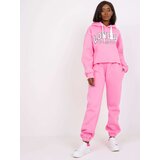 The set includes: trousers, sweatshirtmaterial composition: 70% cotton, 30% polyesterwashing method: machine wash at 30C The model is wearing one size. Model's measurements: height 162 cm, bust 80 cm, waist 63 cm, hips 80 cm. Dimensions of the set in one size measured flat: width under the armpits 54 cm, length of the sweatshirt 49 cm, sleeve length 61 cm, width at the waist 35 cm, length of the pants 98 cm.