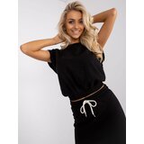 The set includes: skirt, sweatshirtmaterial composition: 70% cotton, 30% polyesterwashing method: machine wash at 30C The model is wearing one size. Model's measurements: height 174 cm, bust 92 cm, waist 62 cm, hips 90 cm.Dimensions of the set in one size measured flat: armpit width 47 cm, sweatshirt length 52 cm, waist width 35 cm, skirt length 59 cm.