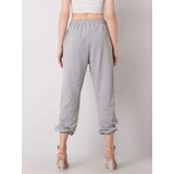 Gray women's sweatpants. material composition: 70% cotton, 30% polyesterwashing method: machine wash at 30CThe model is wearing a size M. Model's measurements: height 174 cm, bust 81 cm, waist 60 cm, hips 89 cm. Measurements of the trousers in size M measured flat: waist width 37 cm, total length 94 cm, waist height 32 cm