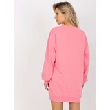 Pink long loose sweatshirt with inscription and pockets. Product code: EMBLU719.82PDominant pattern: printStyle: Casualoccasion: casual, for a walk, for the city The model is wearing one size. Model's measurements: height 170 cm, bust 88 cm, waist 63 cm, hips 89 cm. Measurements of the one size sweatshirt measured flat: armpit width 59 cm, sleeve length 55 cm, total length 79 cm.