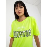 Fluo yellow loose women's printed tshirt . product code: EMTS5271.26XDominant pattern: printStyle: Casualoccasion: casual, city, walk, summer The model is wearing one size. Model's measurements: height 167 cm, bust 73 cm, waist 64 cm, hips 91 cm. Measurements of a one size tshirt measured flat: armpit width 54 cm, total length 75 cm.