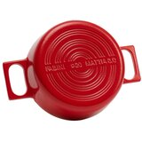 Lonac Mattia 3.0 brenda FABINI izvrstan je pomagač za brzo kuhanje manjih porcija. Bez obzira pripremate li juhu za dvoje, umak za tjesteninu ili jaja za doručak, ovaj lonac od lijevanog željeza od 2 litre idealan je kada ne želite vaditi velike posude. Ovaj lonac predstavlja novu generaciju posuđa od lijevanog željeza Mattia, koje je prošlo pažljiv devetomjesečni razvoj i promišljeni redizajn. Izrađen je od emajliranog lijevanog željeza, koje iznimno dobro raspoređuje i zadržava toplinu, osigurava ravnomjerno kuhanje jela i obećava vijek trajanja od desetljeća. Zahvaljujući čvrstom dizajnu i većoj težini, vrlo je stabilan i siguran za zdravlje. Lonac ima elegantne ručke s ovalnim izrezom sa strane, što olakšava rukovanje. Poklopac je opremljen ručkom od nehrđajućeg čelika s uvučenim vijcima, što unutarnju površinu čini netaknutom i osigurava jednostavno održavanje. Prilikom kuhanja cijenit ćete i poboljšani sustav samoodvodnjavanja s utorima na unutarnjoj strani poklopca, koji vraćaju isparenu vlagu natrag u hranu i održavaju je sočnom. Zahvaljujući visokokvalitetnom emajliranom lijevanom željezu, hrana će dugo ostati topla čak i na stolu kada se posluži. Površina posuđa je optimalno neprianjajuća i jednostavna za čišćenje. Emajlirani premaz ispunjava neravnine površine od lijevanog željeza, povećava neprianjanje i štiti proizvod od korozije. Izdržljivo dno posuđa neće se deformirati čak ni nakon godina korištenja na visokim temperaturama. Posuđe je prikladno za sve vrste štednjaka, uključujući indukciju, i možete ga sigurno koristiti u pećnici ili na roštilju do temperature od 260 C. Međutim, nemojte ga koristiti na otvorenoj vatri.