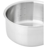 Lonac od nehrđajućeg čelika s poklopcem Lucca 3.0 brenda Fabini ne bi smio nedostajati ni u jednom kućanstvu. Možete ga koristiti za zagrijavanje, pripremu priloga, pirea, kaša ili umaka za meso. Možete ga koristiti i za topljenje maslaca ili izradu slastica. Zahvaljujući višeslojnoj tehnologiji nehrđajućeg čelika, lonac se izuzetno brzo zagrijava na stabilnu temperaturu te savršeno raspoređuje i zadržava toplinu sve do rubova. Ergonomske zavarene ručke osiguravaju udobnu i sigurnu upotrebu. Lonac ima mjere za volumen i dolazi s savršeno prianjajućim poklopcem od nehrđajućeg čelika. Lonac je izrađen od tri sloja certificiranih materijala. Prvi sloj nehrđajućeg čelika debljine 0,4 mm izrađen je od netoksičnog materijala koji je idealan za kontakt s hranom. Zahvaljujući unutarnjem vodljivom sloju od 1,5 mm, posuđe se brzo zagrijava sve do rubova. Vanjski sloj nehrđajućeg čelika debljine 0,6 mm omogućuje korištenje lonca na indukcijskim štednjacima. Kako koristiti lonac? Zagrijavajte ga polako, do maksimalno srednje temperature. Masnoću dodajte tek nakon što se posuđe zagrije. Možete dodatno pojačati neljepljivi učinak ako obrišete masnoću ubrusom nakon što počne stvarati lance. Sastojci koje dodate u početku će se lijepiti. Nakon što savršeno porumene, sami će se odvojiti. Preporučena njega: Nakon završetka, pustite posuđe da se što prije natopi, a zatim ga lako očistite. Bolje je ne koristiti čeličnu vunu, dovoljna su obična sredstva za čišćenje. Lonac se također može prati u perilici posuđa.