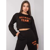 Black twopiece set with inscriptions. The set includes: sweatshirt, pantsMaterial: 68% cotton, 32% polyesterwashing method: machine wash at 30CThe model is wearing a size S. Model's measurements: height 172 cm, bust 88 cm, waist 61 cm, hips 92 cm. Dimensions of the set in size S measured flat: armpit width 49 cm, sweatshirt length 40 cm, sleeve length 59 cm, waist width 32 cm, pants length 102 cm