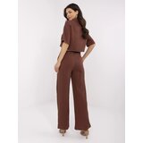The model is wearing a size S/M. Model's measurements: height 173 cm, bust 89 cm, waist 65 cm, hips 91 cm. Measurements of the shirt in size S/M measured flat: armpit width 50 cm, sleeve length 22 cm (from the seam), total length 44 cm, hip width 50 cm. Dimensions of the pants in size S/M: waist width 49 cm, waist height 35 cm, hip width 49 cm, total length 108 cm.
