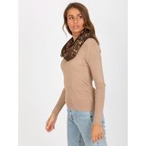Dark beige women's snood with spots. Product code: ATKMFC1.15Dominant pattern: animal motif Dimensions: length 77 cm x 2, width 24 cm